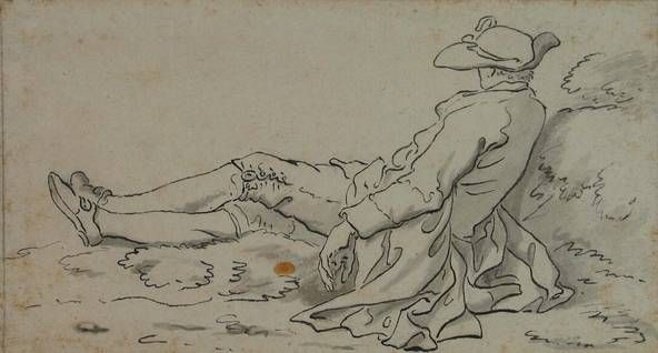 A man resting against a grassy knoll