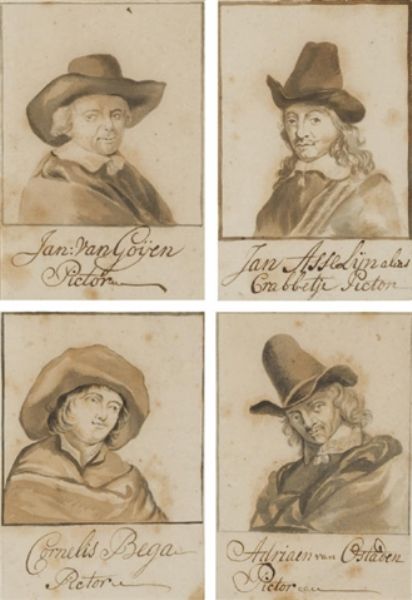 | Cinq portraits de peintres hollandais: Jan Asselyn, Cornelis Bega, Jan van Goyen, Jan Baptist Weenix et Adrian van Ostade | |