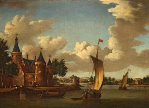 A river landscape with a castle on the shore