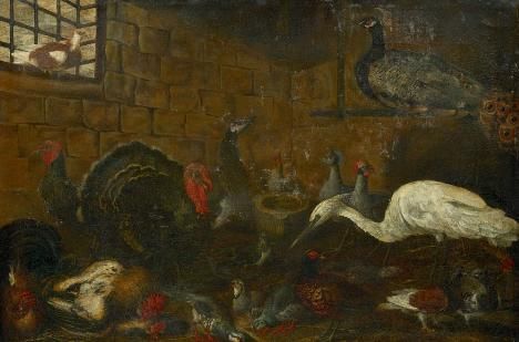 Dindons, paons, hérons, pintades, faisans, poules et coqs
