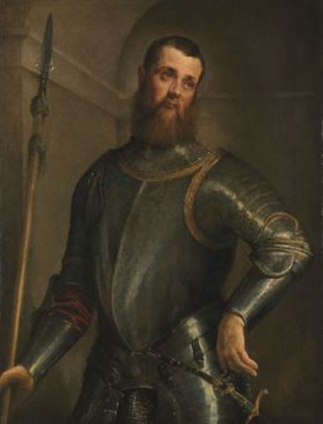 | Portrait of a military commander, three-quarter-length, in armour, wearing a broadsword and holding a partigiana | |