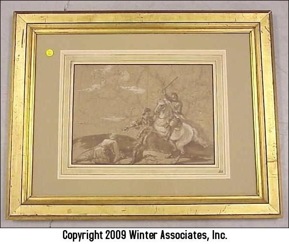 | swordsman saving figure on ground from a figure on horseback | |
