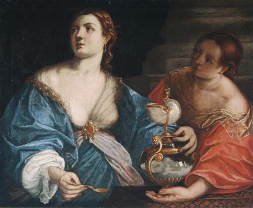 | Königin Sophonisbe und ihre Begleiterin, der numidische König Masinissa lässt seiner Braut, der Karthagerin Sophonisbe, die in r | |