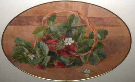 Oval Still Life: Strawberries and Leaves