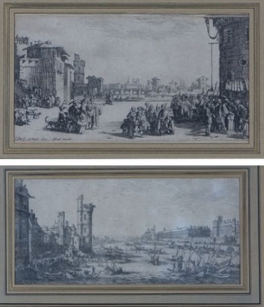 Le Marché d'esclaves ou Petite Vue de Paris et Vue du Louvre