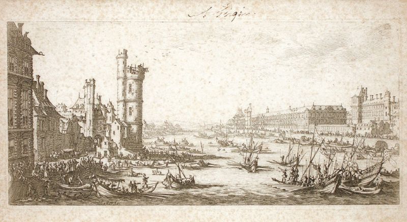| Vue des bords de Seine avec la tour de Nesles et le Louvre | |