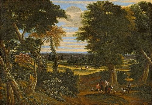 WOODED LANDSCAPE WITH SHEPHERDS AND HORSEMEN
