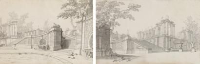 | Deux vues de parc et de palais avec des escaliers dans le goût Rocaille | |