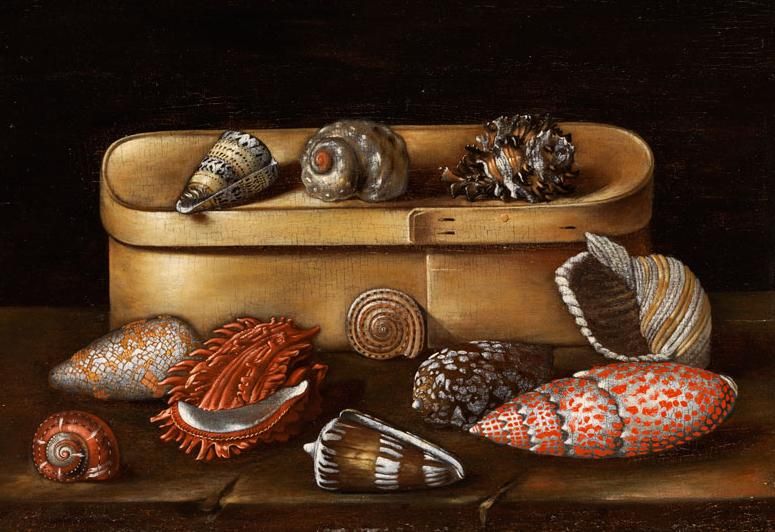 STILLLEBEN MIT SPANSCHACHTEL UND MEERESSCHNECKEN