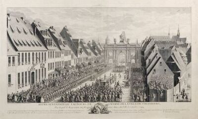 Etching and copper engraving on strong copper printing paper. Signed in the plate "Gravé par J. Ph. Le Bas Engraver du Cabinet du Roy" u.re., in the middle extensively titled, dated and inscribed and provided with a coat of arms, u.li. Inscribed "Inv | |