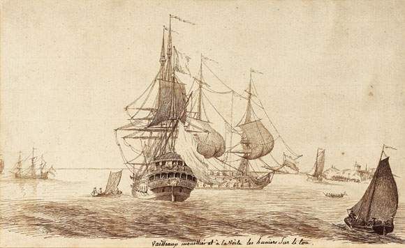 Vaisseaux mouillés et à la voile
