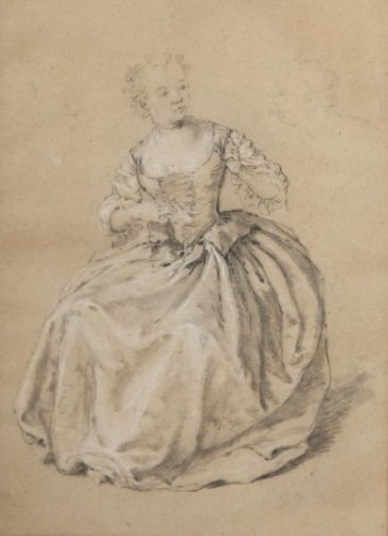 Jeune fille à la robe bouffante et au corsage décolleté.