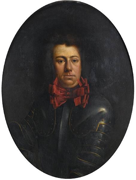 Portrait of a gentleman, bust-length, in armour with a red bow
