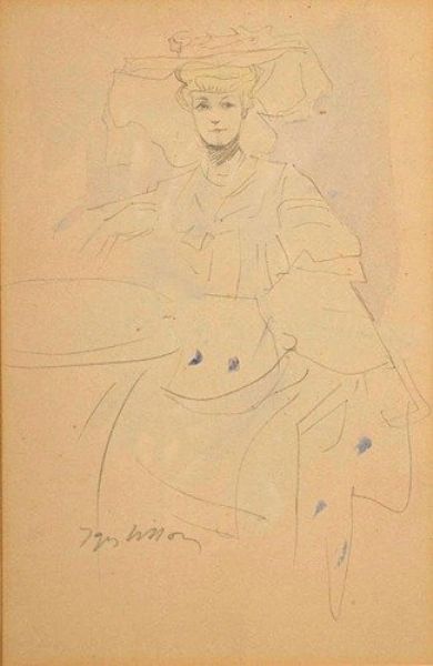 JEUNE FEMME AU CHAPEAU ASSISE, CIRCA 1900