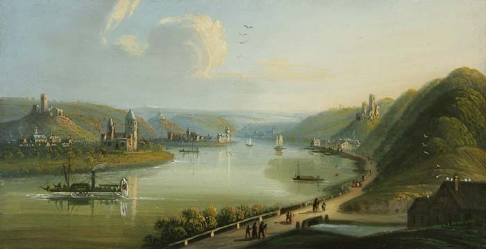 Capellen Lahnstein, im Hintergrund die Marburg stromaufwärts