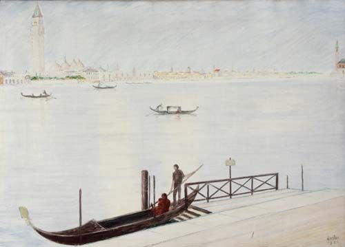 | Blick über die Lagune von Venedig auf die Stadtsilhouette und den Markusdom | |
