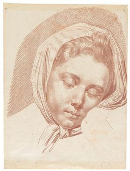 | Porträtstudie eines schlafenden jungen Mädchens mit Kopftuch | |