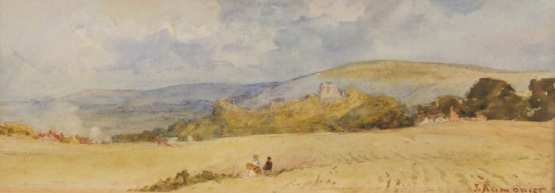 | Evening after a Storm, Bramber (?) Castle, Sussex - Mountain landscape with figures to foreground | |