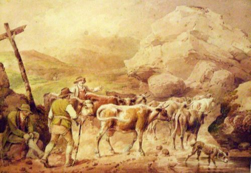 Rural scene with cattle and drovers