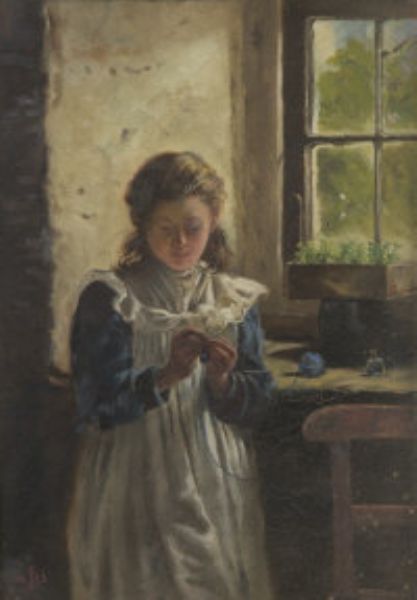 Knitting by a Cottage Window