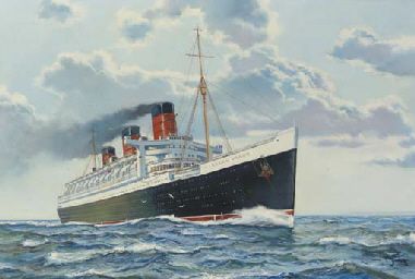 THE R.M.S.QUEEN MARY RUNNING ALONG THE COAST
