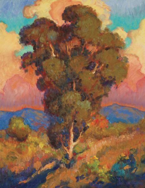 Eucalyptus tree at sunset