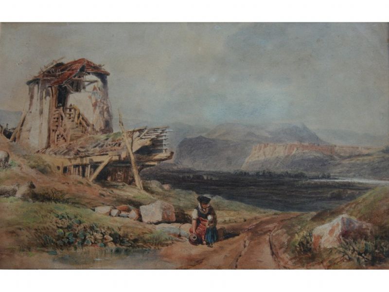 ITALIAN LANDSCAPE WITH A MOTHER AND CHILD BY A RUIN