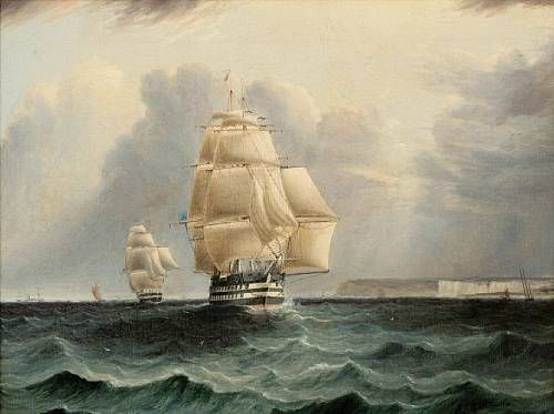 | A British ship of the line leading the blue squadron past Dover | |