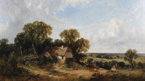 'Landscape with cottage and cart on a path'