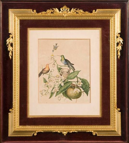 'Humming Birds at the Brazils, the nest on the orange tree'