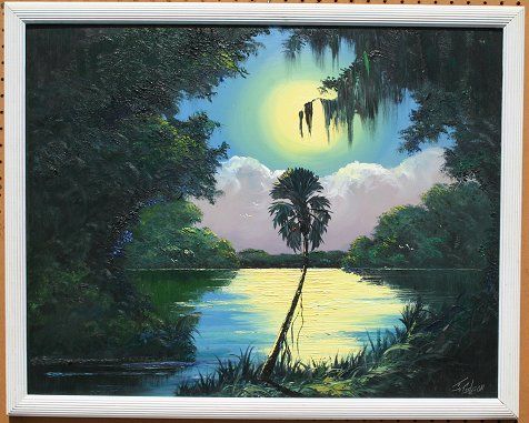 Florida Highwaymen Sunset River Scene with Birds in Flight
