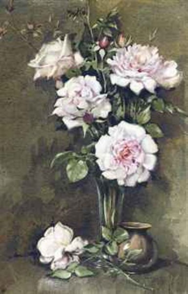 A vase of pink roses