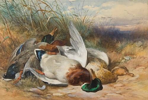 Still life of wildfowl upon sand dunes