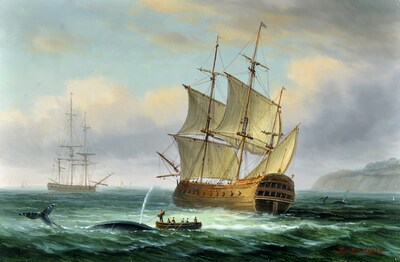 Whaling ships operating off a headland