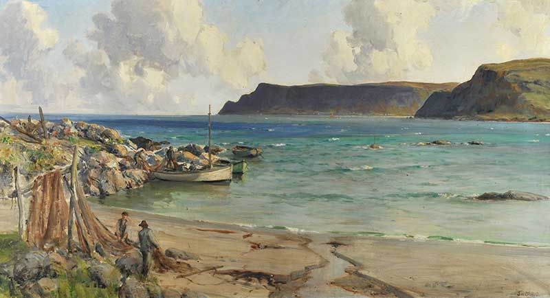 MENDING NETS NEAR CUSHENDUN, CO. ANTRIM COAST
