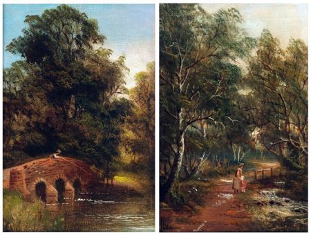 | Figure Fishing from a Bridge; and Mother and Child by a Stream | |