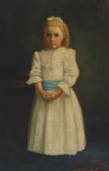 YOUNG GIRL IN WHITE DRESS WITH BLUE SASH