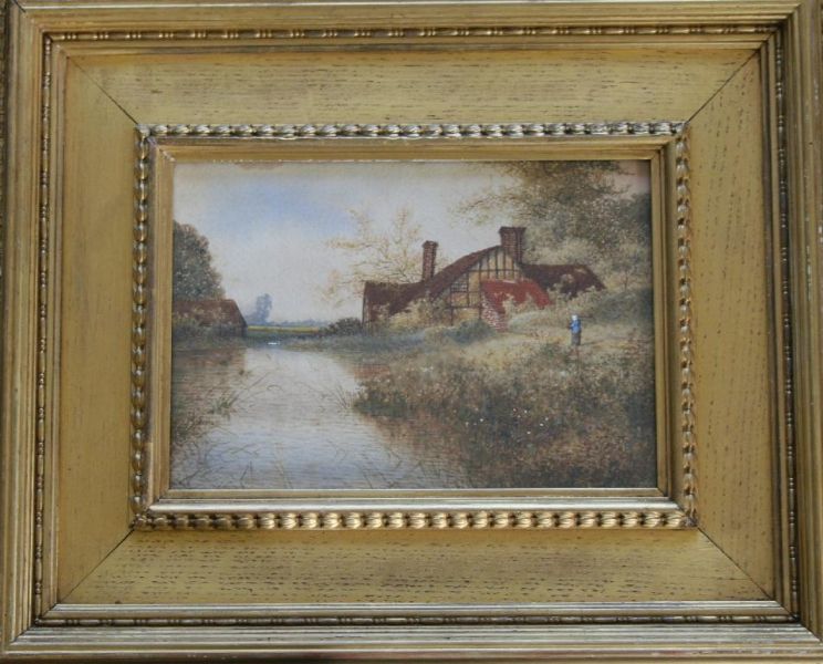 COTTAGE BY A RIVER; CATTLE IN RIVERSIDE PASTURE