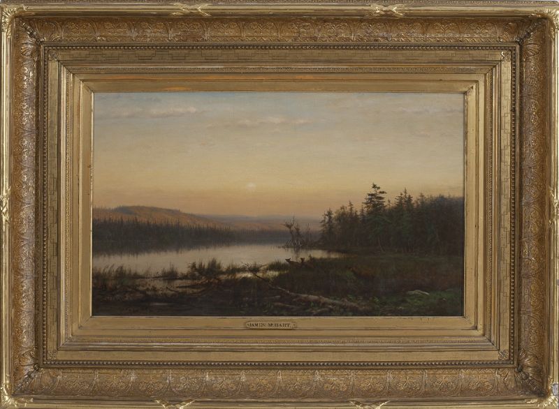 TWILIGHT WITH DEER AT LAKE'S EDGE