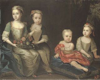 | Group portrait of the Holdsworth children, Mary, Sarah, Arthur and Anne, full-length, seated in an interior, a landscape beyond | |