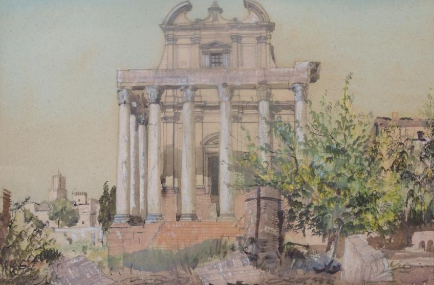 Pencil ink and watercolour with white