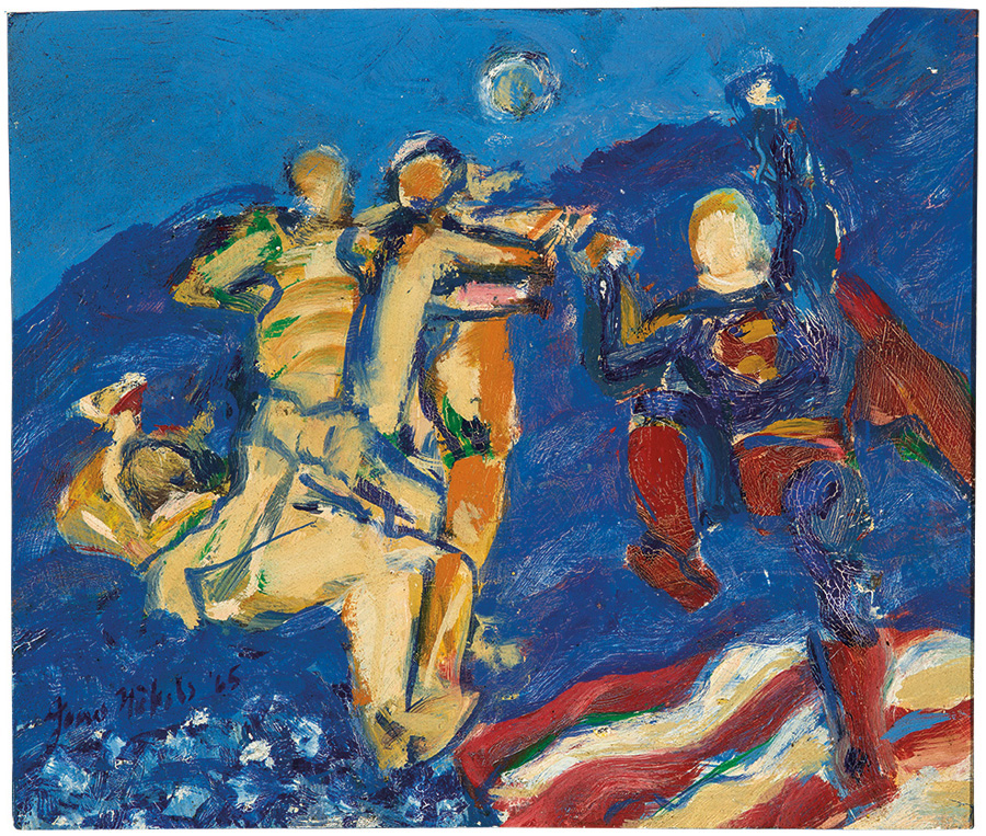 Oil Painted metal on wood; oil on board