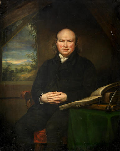 | Portrait of Dr. Thaddeus Connellan, three-quarter-length, seated with a book, before a window unframed | |