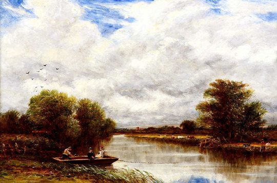The River Ferry with Figures Crossing