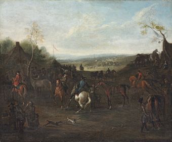 Jockeys and horses preparing for a race meeting