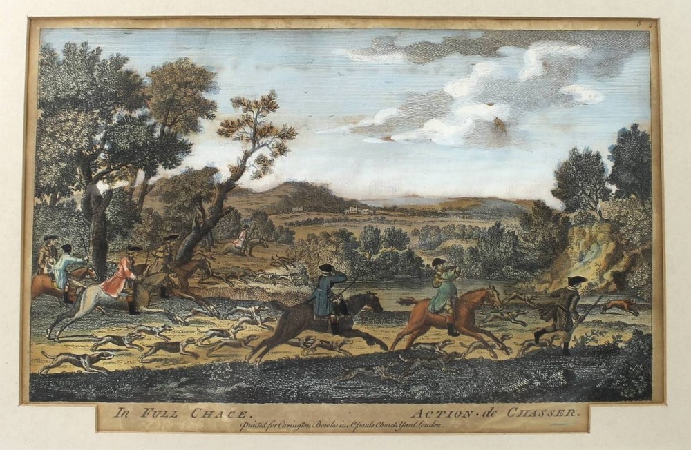 | A set of four hand coloured hunting engravings for Carington Bowles, London | |