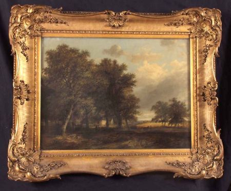 | Woodland View with Figures and Donkeys, further Figure and Dog leading a Horse and Cart, Cottage beyond | |