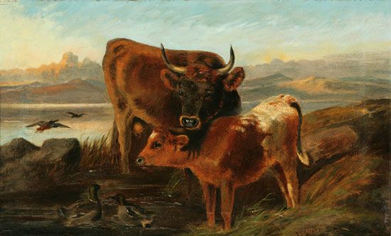 Cow and Calf in a Highland Landscape