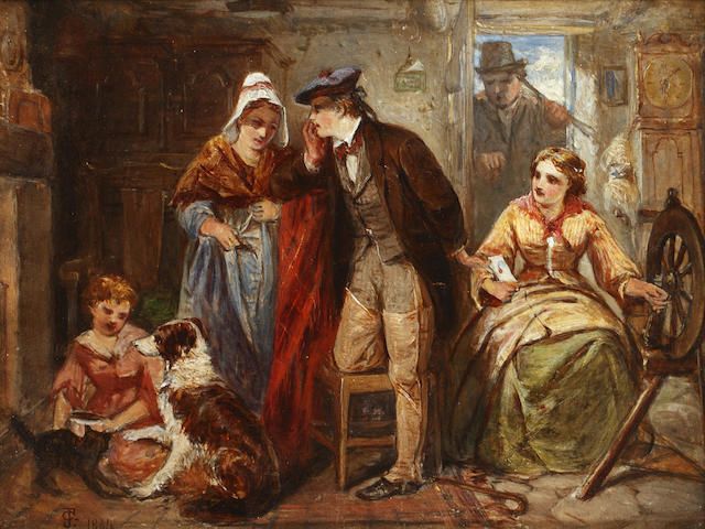 Figures in a cottage interior