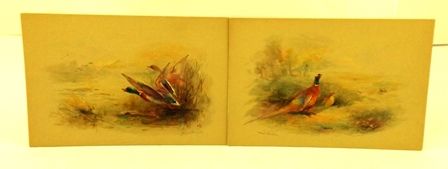 Cock and Hen Pheasant in landscape habitat and COMPANION Mallard taking flight